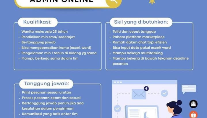 - Pengalaman: Minimal 1 tahun di bidang yang sama (Admin Online/Marketplace).