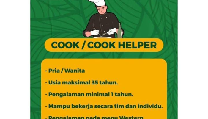 Berikut adalah kriteria yang dibutuhkan untuk posisi Cook dan Cook Helper: