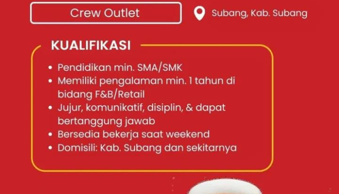 • Pengalaman: Memiliki pengalaman minimal 1 tahun di bidang F&B atau Retail.