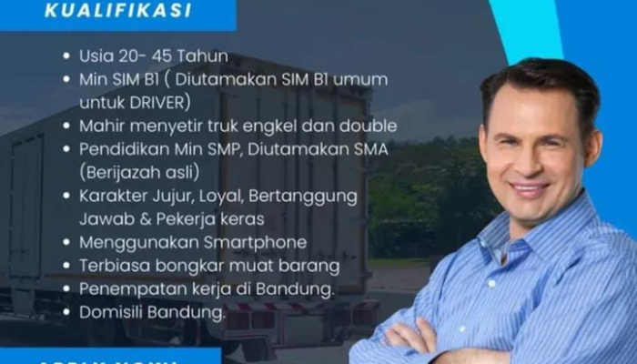Kami mencari individu dengan karakter Jujur, Loyal, Bertanggung Jawab, dan Pekerja Keras. Jika Anda berpengalaman mengendarai truk atau terbiasa bongkar muat, simak detail lowongan kerja Driver dan Helper di Bandung ini selengkapnya, dan segera kirimkan lamaran Anda!