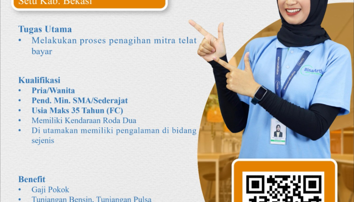 Anda mencari peluang karir di sektor keuangan mikro dengan penempatan di wilayah Jawa Barat seperti Purwakarta, Karawang, Bekasi, dan Subang? PT Bina Artha Ventura (BAV), perusahaan yang terdaftar dan diawasi OJK, membuka lowongan besar untuk dua posisi field staff kunci: Account Officer (AO) dan Field Collector (FC). Dapatkan benefit menarik seperti gaji pokok, tunjangan, hingga bonus! Jika Anda individu yang gigih, lulusan SMA/Sederajat, dan memiliki kendaraan roda dua, segera simak detail Loker Bina Artha Ventura 2025 ini!