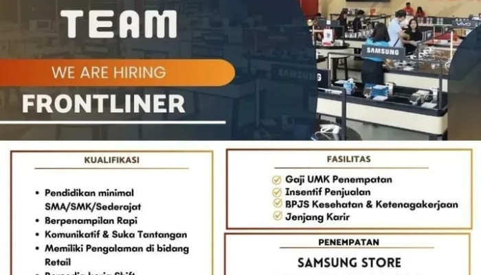 Apakah Anda seseorang yang percaya diri, komunikatif, dan menyukai tantangan di dunia ritel? Ini adalah kesempatan emas bagi Anda! Samsung Store di bawah naungan Erajaya Group sedang membuka lowongan pekerjaan untuk posisi Frontliner di area Bungursari, Purwakarta.
