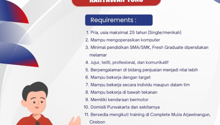 - Pendidikan: Minimal lulusan SMA/SMK sederajat.