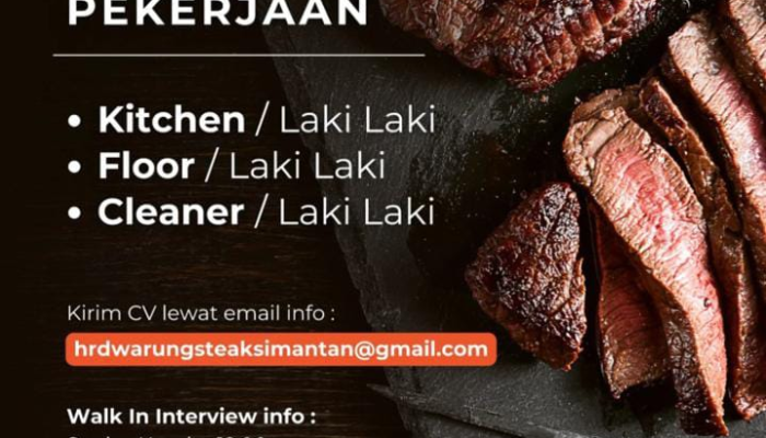 Karir di Industri Kuliner! Lowongan Kitchen, Floor, dan Cleaner di Warung Steak Simantan