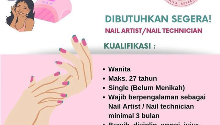 - Wajib memiliki pengalaman sebagai Nail Artist / Nail Technician minimal 3 bulan.