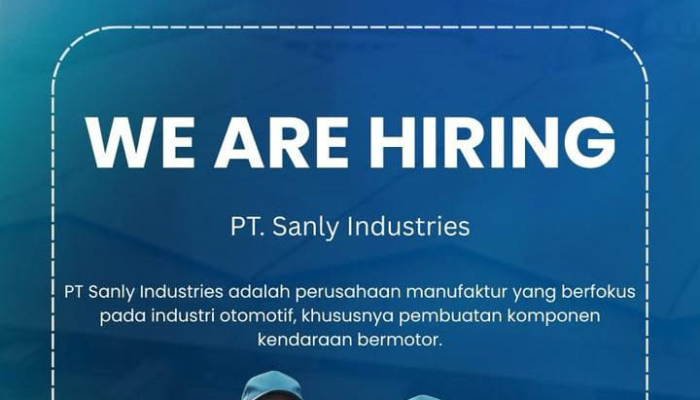 PT Sanly Industries adalah perusahaan manufaktur yang bergerak di industri otomotif. Kami memiliki spesialisasi dalam pembuatan komponen kendaraan bermotor. Dengan komitmen pada kualitas dan efisiensi, kami mencari individu yang disiplin dan bertanggung jawab untuk memastikan proses produksi berjalan lancar.