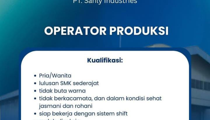 Anda lulusan SMK yang sehat jasmani dan rohani serta siap bekerja keras? PT Sanly Industries, sebuah perusahaan manufaktur yang fokus pada industri otomotif, sedang membuka lowongan untuk posisi Operator Produksi. Jika Anda siap bekerja dengan sistem shift, mari bergabung bersama kami untuk menjadi bagian dari tim produksi komponen kendaraan bermotor!
