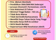 - Pendidikan: Minimal SMA/SMK/MA sederajat.