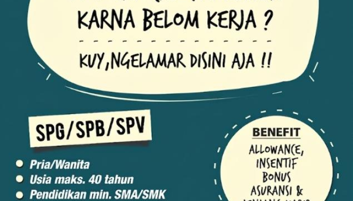 Lowongan ini bersifat segera. Proses seleksi akan terus berjalan hingga posisi SPG, SPB, dan SPV terpenuhi.