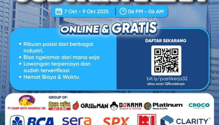 Lowongan kerja ini adalah loker terbaru dan akan ditutup sewaktu-waktu jika posisi telah terisi. Kami anjurkan Anda untuk melamar secepatnya.