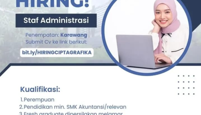 PT Cipta Grafika membuka lowongan kerja untuk posisi Staf Administrasi dengan penempatan di Karawang. Kesempatan ini terbuka untuk kamu lulusan SMK Akuntansi atau jurusan relevan lainnya, termasuk fresh graduate!