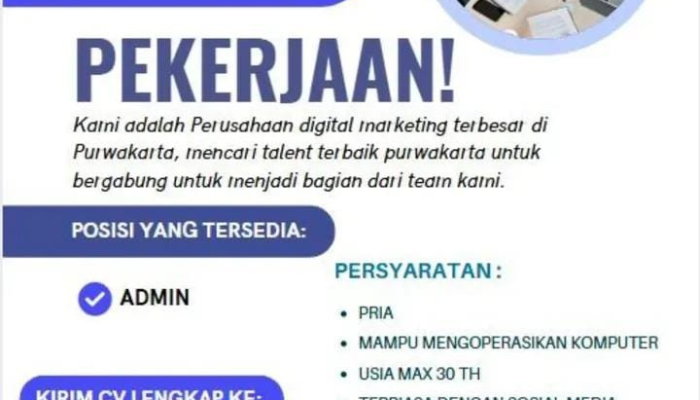 Apakah Anda seorang pria yang tech-savvy dan sedang mencari peluang karir di industri kreatif yang dinamis? Sinergy Creative House, perusahaan digital marketing terkemuka di Purwakarta, sedang membuka pintu bagi talenta-talenta berbakat untuk bergabung menjadi bagian dari tim sukses kami. Jangan lewatkan kesempatan emas untuk mengembangkan potensi Anda di lingkungan kerja yang modern dan penuh inovasi.