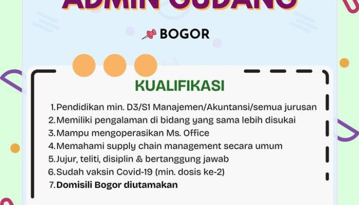 • Domisili: Diutamakan kandidat yang berdomisili di Bogor.
