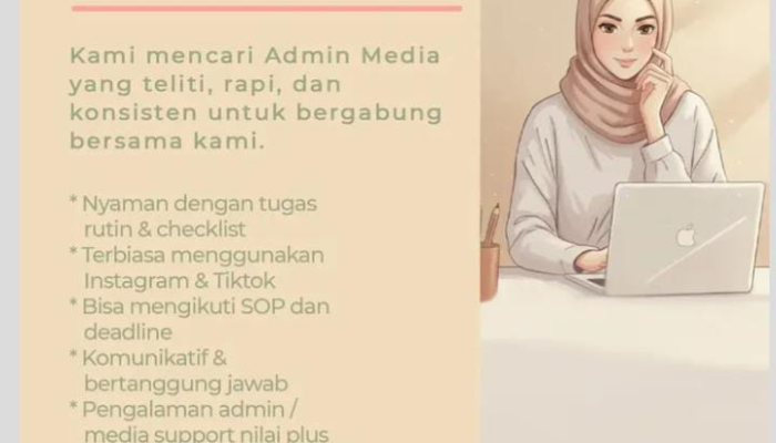 - Pengalaman: Memiliki pengalaman di bidang admin atau media support akan menjadi nilai tambah (nilai plus).