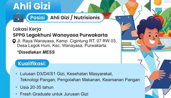 Di tahun 2026 ini, kebutuhan akan ahli gizi profesional semakin meningkat seiring dengan kesadaran masyarakat akan pola makan sehat. Jika Anda memiliki latar belakang pendidikan yang sesuai dan ingin berkontribusi nyata dalam pengelolaan nutrisi yang tepat, lowongan ini adalah langkah karir yang ideal untuk Anda.