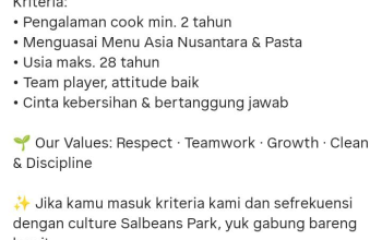 - Pendidikan: Lulusan D3/D4/S1 Gizi, Kesehatan Masyarakat, Teknologi Pangan, Pengolahan Makanan, atau Keamanan Pangan.