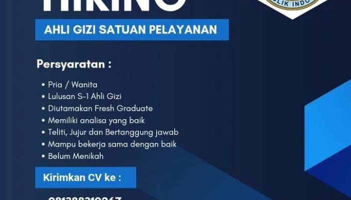 Apakah Anda seorang lulusan S1 Gizi yang bersemangat untuk berkontribusi dalam perbaikan gizi masyarakat? Badan Gizi Nasional Republik Indonesia membuka kesempatan emas bagi Anda untuk bergabung sebagai Ahli Gizi Satuan Pelayanan. Jika Anda teliti, jujur, dan memiliki kemampuan analisa yang baik, inilah saatnya untuk mewujudkan karir profesional Anda di bidang kesehatan yang mulia ini.