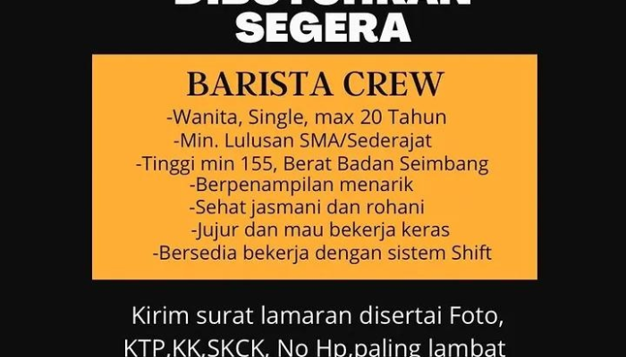 Catatan: Pastikan subjek email ditulis dengan jelas, contoh: “Lamaran Kerja – Barista Crew – [Nama Anda]”.