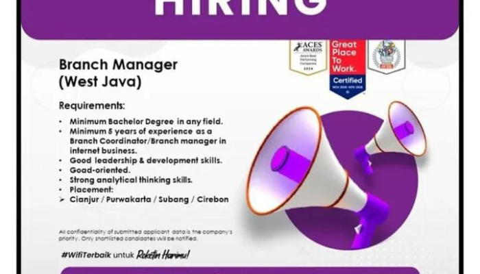 - Pengalaman: Memiliki pengalaman kerja minimal 5 tahun sebagai Branch Coordinator atau Branch Manager di bisnis industri internet.