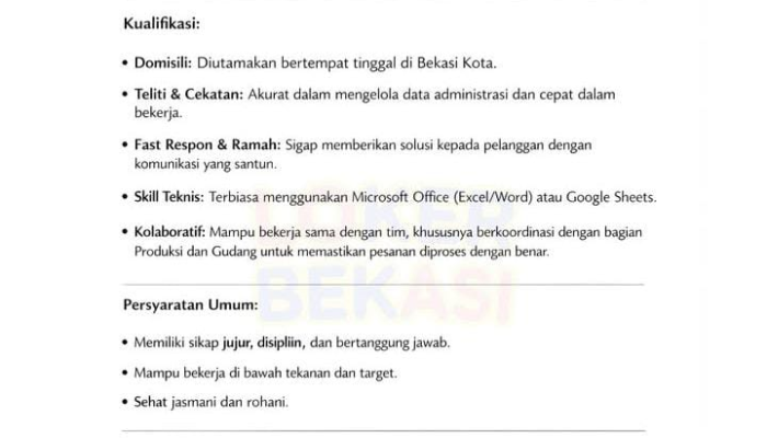 - Domisili: Diutamakan bertempat tinggal di Bekasi Kota.