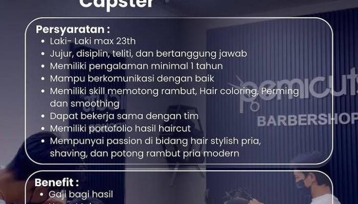 Apakah Anda seorang penata rambut berbakat dengan passion tinggi di dunia men’s grooming? Pemicuts Barbershop, salah satu barbershop modern terkemuka di Purwakarta, sedang mencari Capster profesional untuk bergabung dengan tim kreatif kami. Jika Anda memiliki keahlian dalam menciptakan potongan rambut pria yang modern dan stylish, inilah kesempatan Anda untuk meningkatkan karir!