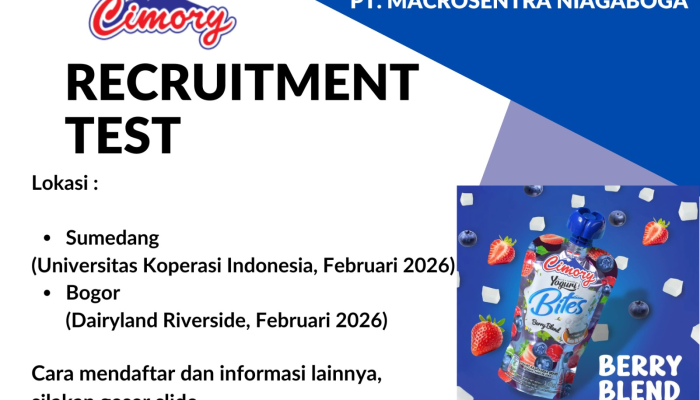 Apakah Anda talenta muda yang dinamis dan sedang mencari peluang karier cemerlang? PT Macrosentra Niagaboga (Cimory Group) kembali membuka kesempatan emas melalui Business Development Program (BDP) untuk periode Februari 2026.