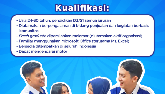 • Mobilitas: Mampu mengendarai sepeda motor dan bersedia ditempatkan di seluruh wilayah Indonesia.