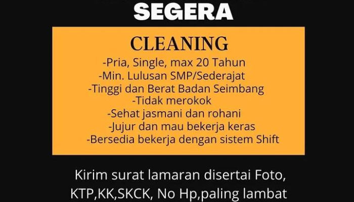 • Pendidikan: Minimal lulusan SMP/Sederajat.