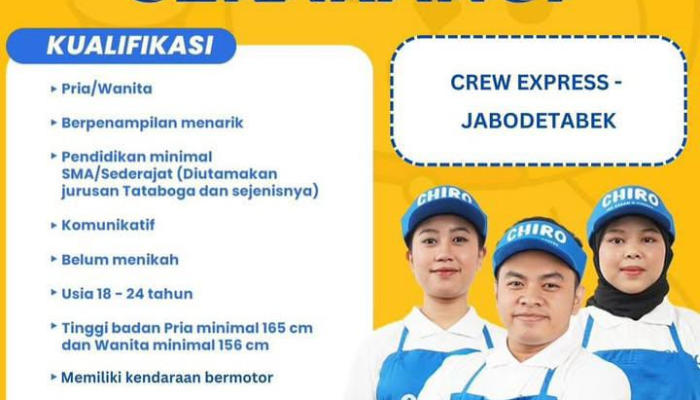 Cara Melamar Lowongan Kerja Crew Express CHIRO (PT. Tirta Sukses Indomakmur)