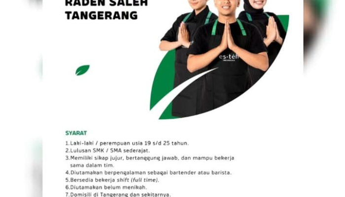 Apakah Anda seorang yang bersemangat, memiliki sikap jujur, dan sedang mencari peluang karir di industri minuman? Esteh Indonesia membuka kesempatan emas bagi Anda untuk bergabung sebagai Crew Kebun di gerai kami yang berlokasi di Raden Saleh, Tangerang. Ini adalah peluang sempurna bagi Anda yang ingin menjadi bagian dari tim yang solid dan berkontribusi langsung dalam menyajikan minuman favorit banyak orang. Jika Anda siap memberikan pelayanan terbaik, kami mengundang Anda untuk segera melamar.