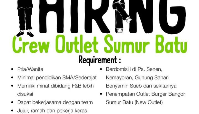 Berikut adalah persyaratan bagi Anda yang ingin melamar posisi Crew Outlet Burger Bangor: