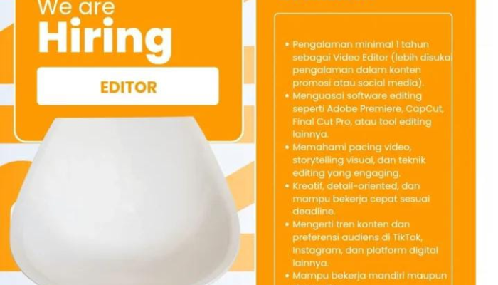 - Pengalaman minimal 1 tahun sebagai Video Editor (lebih disukai memiliki pengalaman dalam konten promosi atau sosial media).