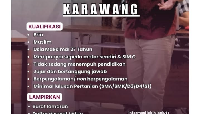 CV Sadewa Agri Jaya, sebuah perusahaan yang bergerak di bidang distributor pupuk, membuka kesempatan bagi individu yang bersemangat untuk bergabung sebagai Field Assistant (FA) di wilayah Karawang. Ini adalah peluang bagi Anda yang memiliki ketertarikan di sektor pertanian dan siap bekerja di lapangan.