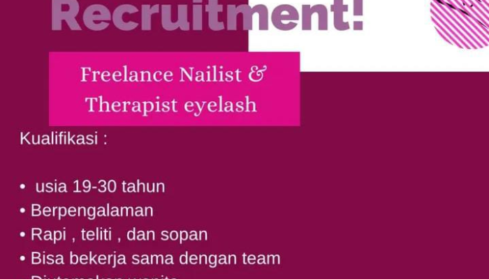 Lowongan Kerja Freelance Nailist & Eyelash Therapist Atletika Beauty Bar 2026