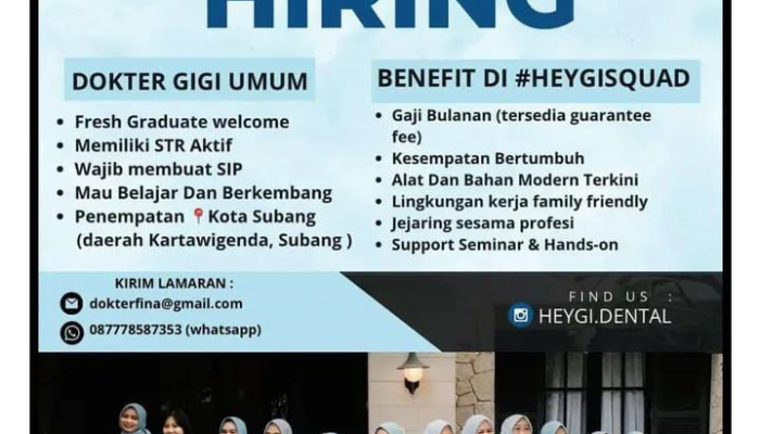 Saat ini, Heygi Dental membuka rekrutmen untuk tiga posisi utama: