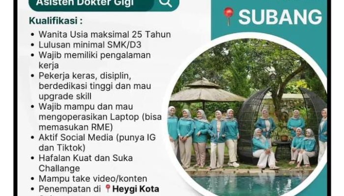 Apakah Anda tenaga medis atau profesional administrasi yang berdedikasi dan ingin berkembang di industri kesehatan gigi? Heygi Dental, klinik dokter gigi pilihan keluarga sejak 2021, sedang membuka kesempatan karir besar-besaran untuk penempatan di Kota Subang. Kami mencari individu yang aktif, kompeten, dan siap memberikan layanan terbaik bagi masyarakat Subang.