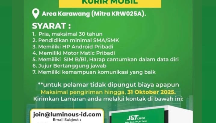 📝 Subject email: Fulltime Kurir Mobil Karawang
