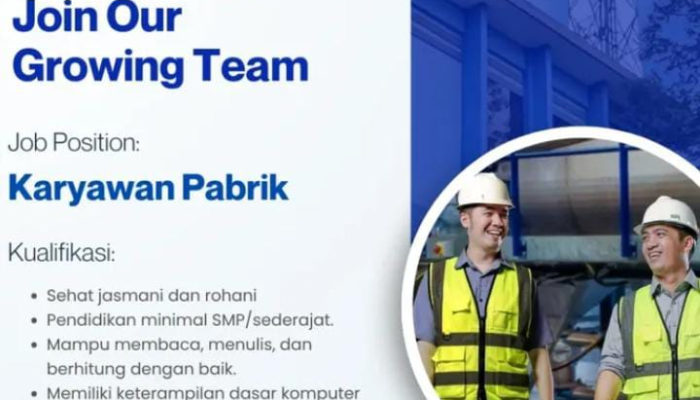 Kami mengajak Anda untuk mengisi posisi sebagai Karyawan Pabrik yang akan ditempatkan di wilayah Jakarta. Jika Anda memiliki dasar keterampilan membaca, menulis, berhitung yang baik, serta jujur dan bertanggung jawab, ini adalah peluang Anda untuk Join Our Growing Team!