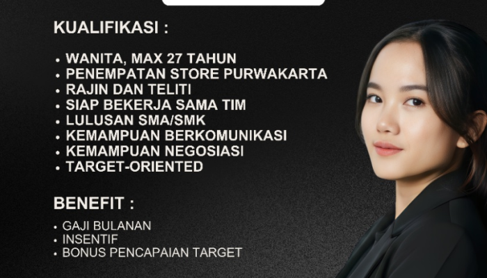 • Domisili: Diutamakan yang siap untuk penempatan di store Purwakarta.
