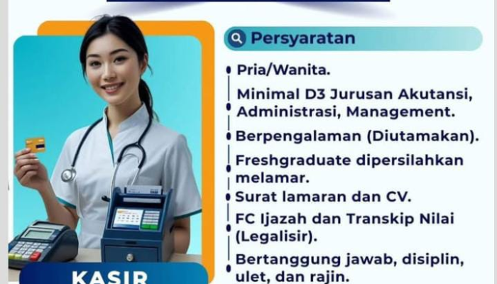 Apakah Anda seorang profesional administrasi yang berdedikasi dan ingin berkontribusi dalam dunia pelayanan kesehatan? Rayhan Hospital, rumah sakit terkemuka yang berkomitmen pada pelayanan paripurna, sedang membuka kesempatan bagi Anda untuk bergabung sebagai Kasir.