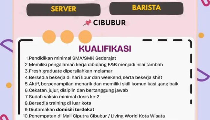 - Pengalaman: Memiliki pengalaman di bidang F&B menjadi nilai tambah, namun fresh graduate dipersilakan melamar.