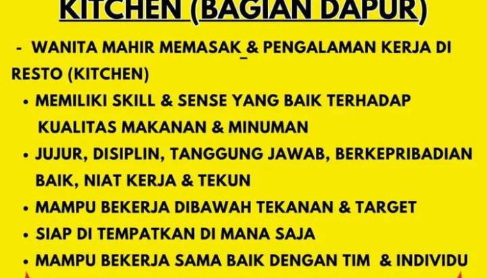 Apakah Anda seorang wanita yang memiliki gairah (passion) besar di dunia kuliner dan mahir dalam mengolah masakan? Nasi Goreng Bistik Sawah Kurung, salah satu destinasi kuliner favorit di Bandung, sedang mencari individu yang berdedikasi untuk bergabung dengan tim kami sebagai Kitchen (Bagian Dapur).