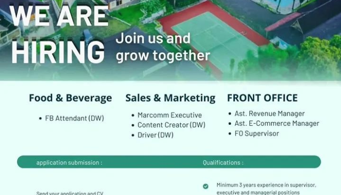 - Marcomm Executive: Mengelola komunikasi pemasaran dan citra brand resort.