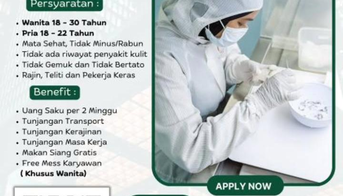 Paragraf Pembuka Apakah Anda mencari peluang karir di industri pengolahan sarang burung walet yang menjanjikan? PT Vimayo Indonesia Persada (PT Indo Nutrisi Jaya) saat ini membuka kesempatan bagi Anda untuk bergabung melalui program Permagangan Operator Produksi Sarang Burung Walet. Penempatan kerja berlokasi di wilayah Bungursari, Purwakarta. Jika Anda adalah individu yang teliti, pekerja keras, dan ingin mendapatkan pengalaman profesional di bidang produksi, segera daftarkan diri Anda!