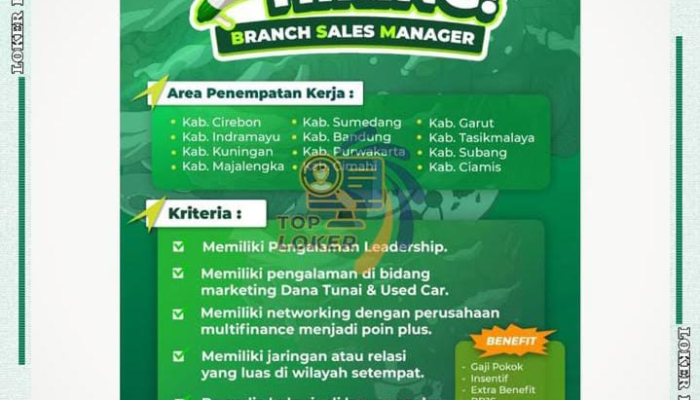 Apakah Anda seorang pemimpin di bidang penjualan yang sedang mencari tantangan baru untuk meningkatkan karier di awal tahun 2026 ini? PT Taktis sedang membuka kesempatan emas bagi para profesional di bidang multifinance untuk bergabung sebagai Branch Sales Manager. Jika Anda memiliki jiwa kepemimpinan yang kuat dan jaringan luas di wilayah Jawa Barat, lowongan ini adalah peluang yang tidak boleh Anda lewatkan.
