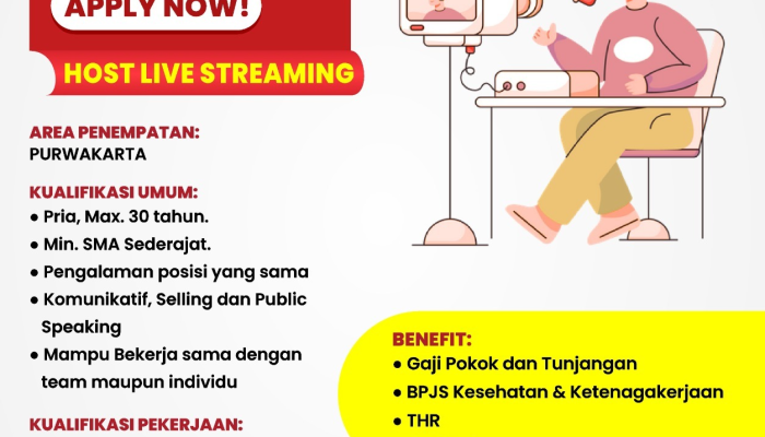 Host Live Streaming (Pria)Pria, Komunikatif, SellingPublic Speaking30 TahunSMA SederajatPengalaman Posisi yang Sama