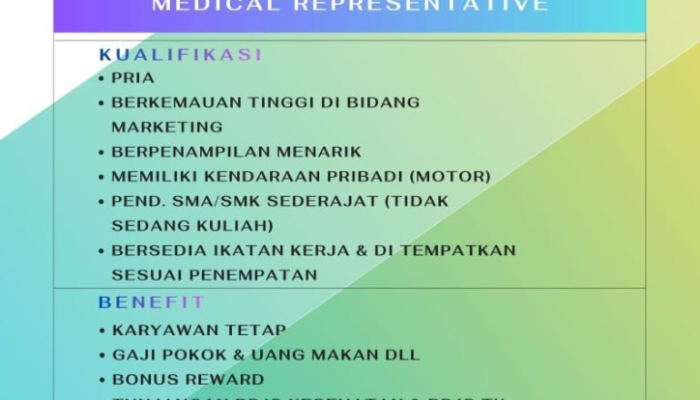 Sebagai Medical Representative, Anda akan bertanggung jawab untuk memperkenalkan dan memasarkan produk-produk farmasi perusahaan kepada tenaga medis profesional. Anda diharapkan mampu membangun hubungan yang baik dengan mitra kerja dan mencapai target pemasaran yang telah ditetapkan.