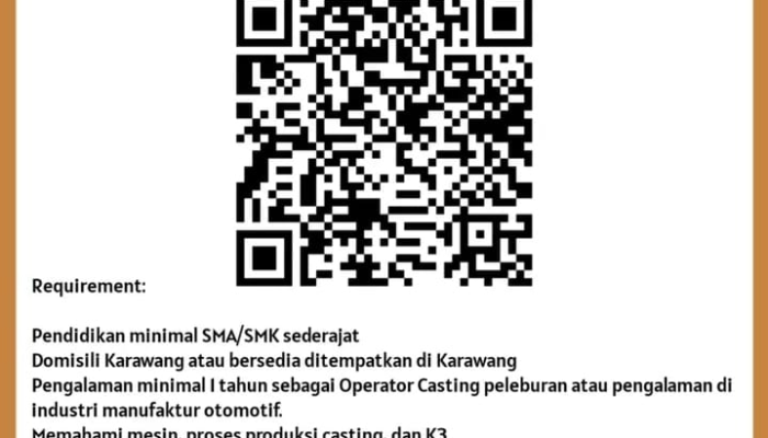 Jika Anda memenuhi semua kualifikasi di atas dan tertarik untuk berkarir bersama kami, silakan daftarkan diri Anda melalui link yang ada di QR Code pada poster atau cari tahu lebih lanjut tentang cara melamar melalui akun media sosial penyedia informasi lowongan.
