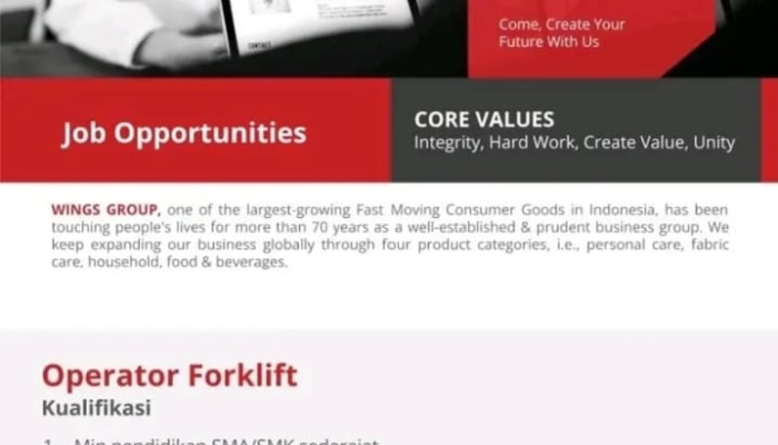 Wings Group, salah satu perusahaan Fast Moving Consumer Goods (FMCG) terbesar dan terus berkembang di Indonesia, saat ini membuka kesempatan kerja untuk posisi: