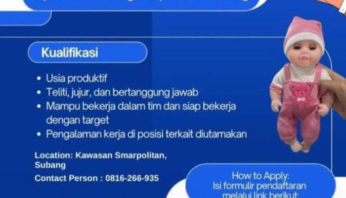 Loker Subang Terbaru Januari 2026 – Apakah Anda seorang tenaga kerja yang teliti, jujur, dan memiliki etos kerja tinggi? Peluang karir menarik kini tersedia di Kawasan Smartpolitan, Subang. Kami sedang mencari kandidat produktif untuk bergabung sebagai Operator Sewing dan Operator Cutting.